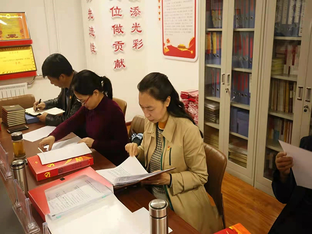 余凤萍书记一行先后参观了信息技术系党员义务维修服务站、录播室、录课室、党员活动室,查阅了党建工作台账。杨东同志代表信息技术系党总支向余凤萍书记作党建工作汇报。各系党总支书记对我系党建工作进行了点评和交流。