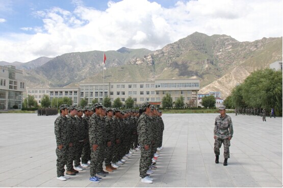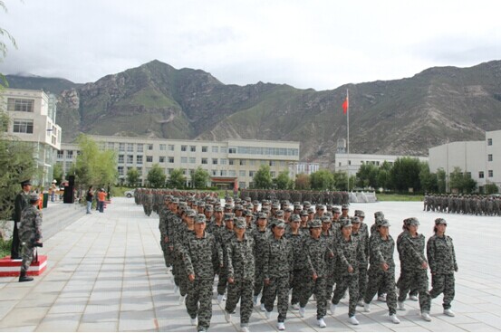 从7月20日至8月5日,拉萨师专组织2013级全体学生参加为期15天的军训。本次军训共有30个行政班940名学生参加,设1团3个营6个连30个排,除开展正常的军事技能培训、国防知识学习以外,还通过形式多样的活动引导学生接受学校精心组织安排的素质教育。军训工作受到领导、师生的高度重视,组织严密,内容丰富,成效显著。